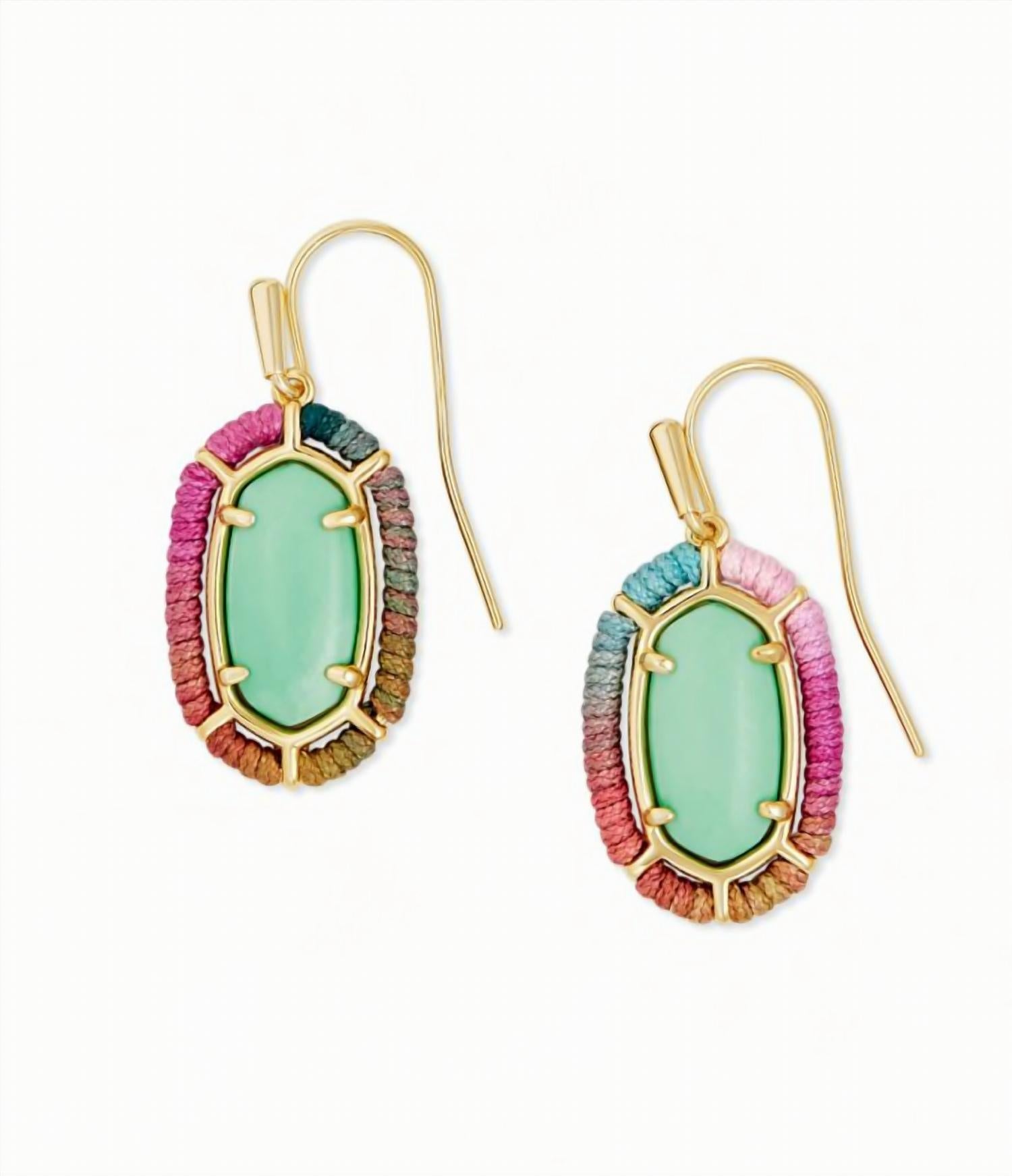 Unveil your summer statement look with the Women's Threaded Lee Drop Earrings by Kendra Scott. These earrings feature a classic drop design, accentuated by candy-colored Mint Magnesite stones, intricately framed in ombre paracord for handcrafted detail. Composed of gold-plated fashion jewelry, these earrings offer a vibrant, colorful personality that captures attention. A perfect blend of signature shapes and bright hues, ideal for elevating any outfit.