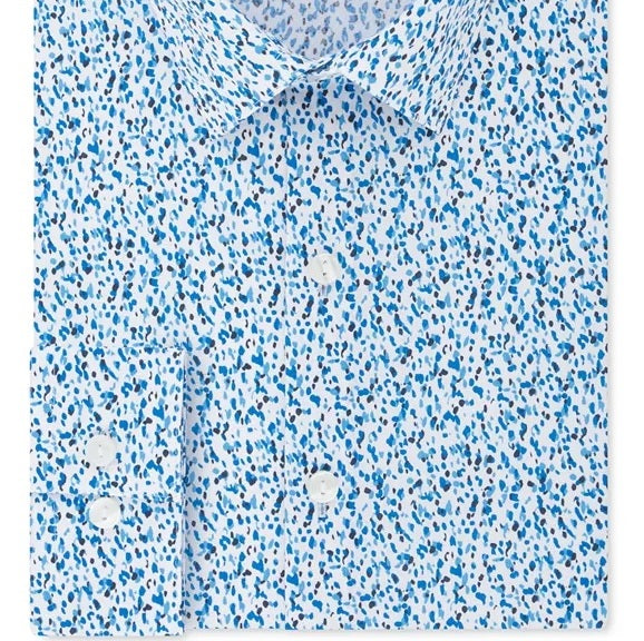 O corte justo é mais justo no peito, nas mangas e na cintura; possui cavas e mangas finas | Gola elástica | Punhos com botões | Estampa | Desempenho elástico; tecnologia de remoção de sujeira e captura de odores | Algodão/poliéster | Lavável à máquina