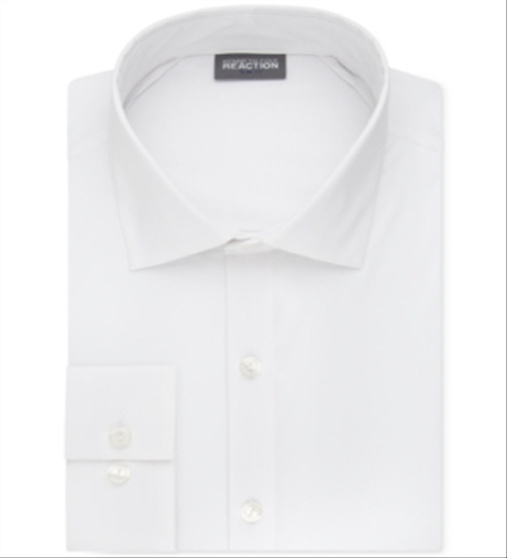 Camisa social masculina Kenneth Cole Reaction Slim Fit Techni Cole Flex Collar Solid, branca, tamanho 15,5