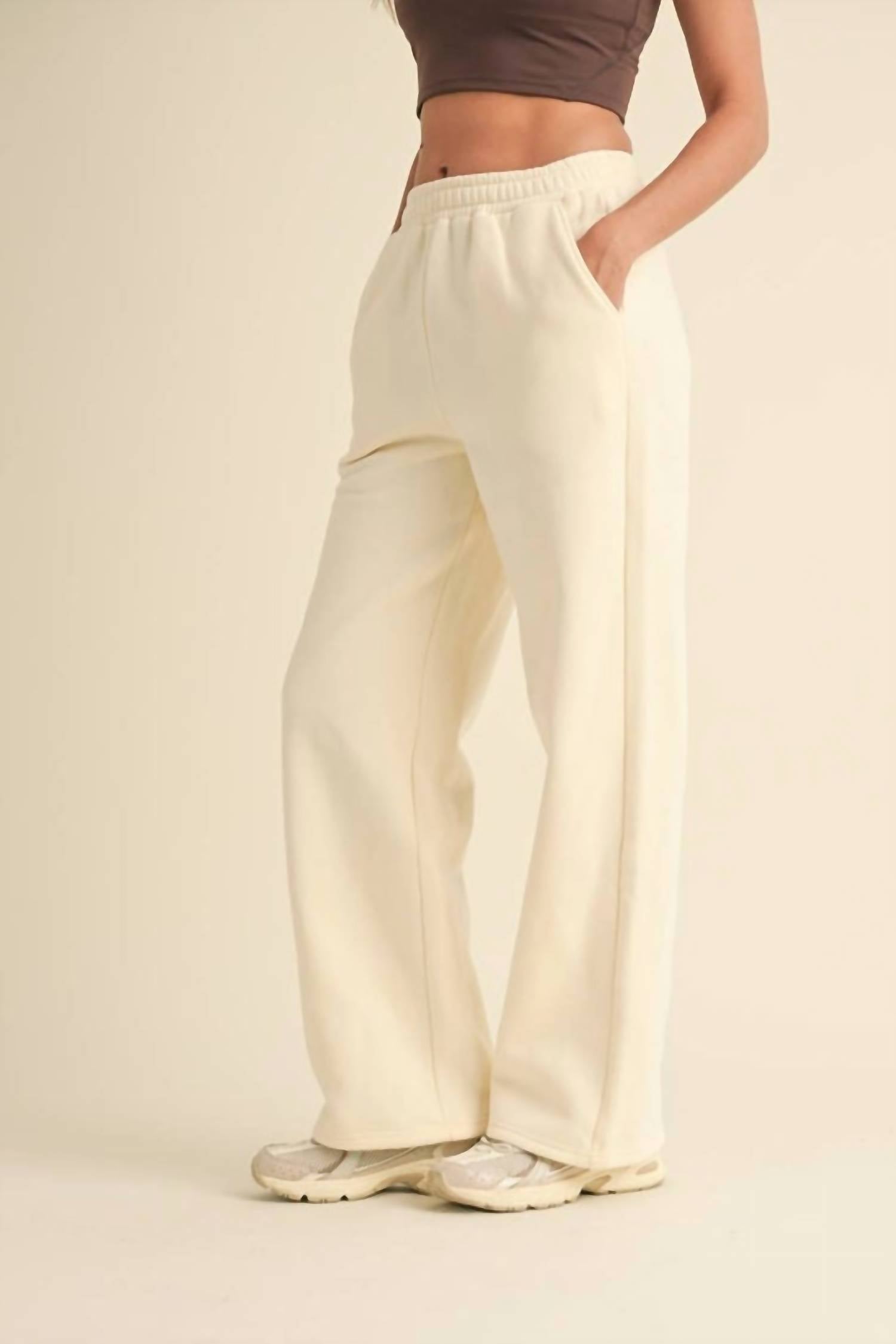 Calça de moletom de lã confortável com pernas largas e bolsos laterais.
