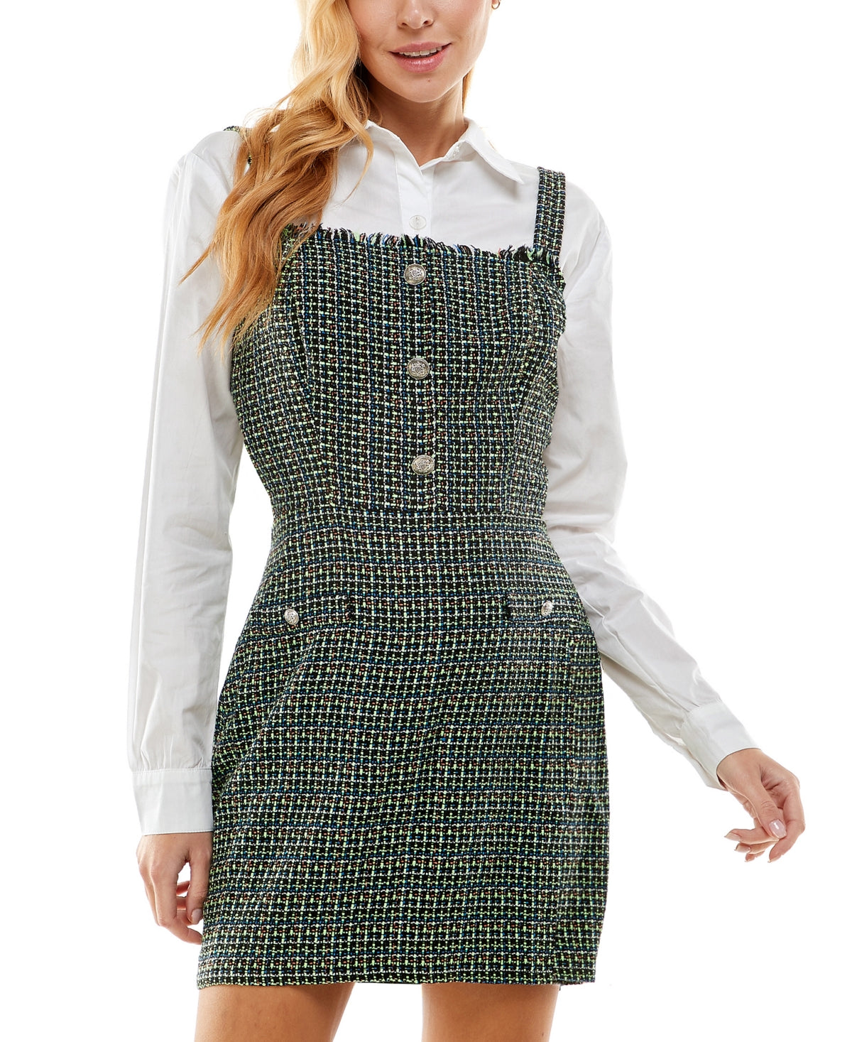 Kingston preenche todos os requisitos com este vestido tubinho de duas peças, projetado com uma camisa de botões impecável e um vestido estampado sem mangas. Sem forro | Gola pontuda; Silhueta tubinho | Design de duas peças; camisa de gola e vestido tubinho estampado | Importado | Fecho de zíper nas costas
