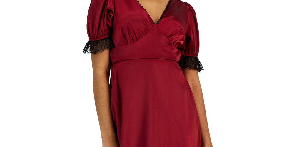 Vestido feminino para coquetel e festa | Cetim | Decote em V com acabamento em renda