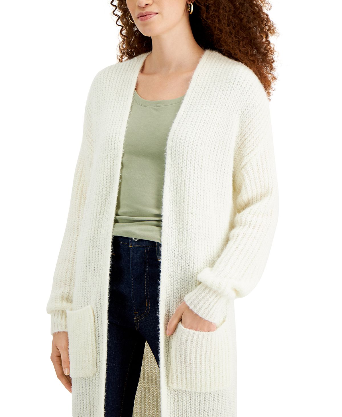 Cardigan grande canelado feminino Kit & Sky, branco, tamanho grande