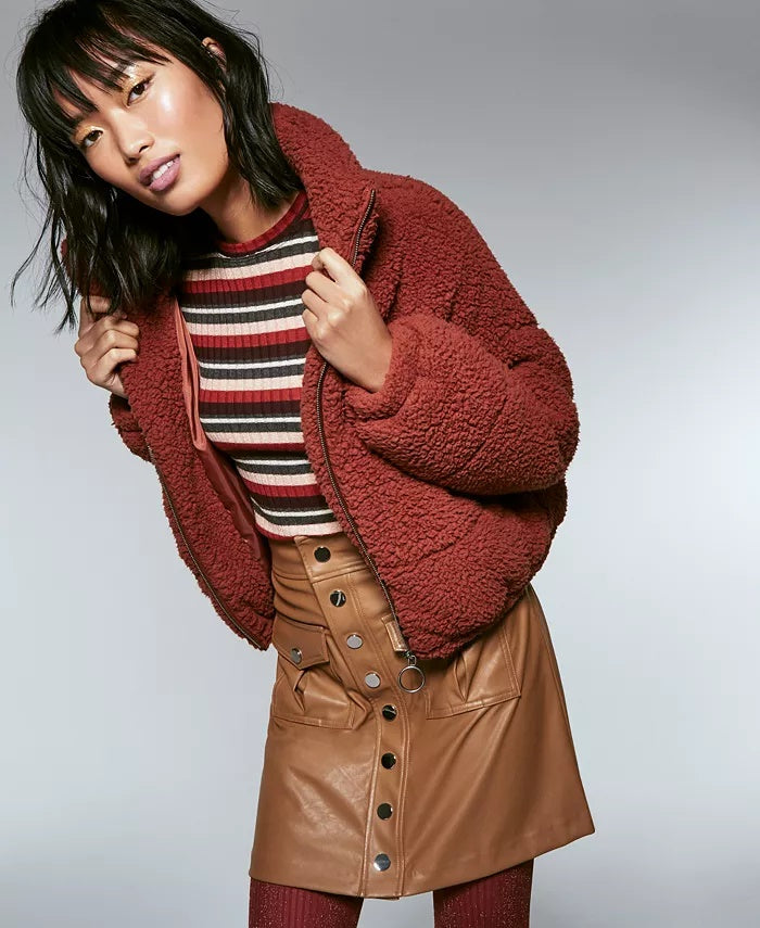 Jaqueta Sherpa Puffer Feminina Kit & Sky Laranja Escuro Tamanho Médio