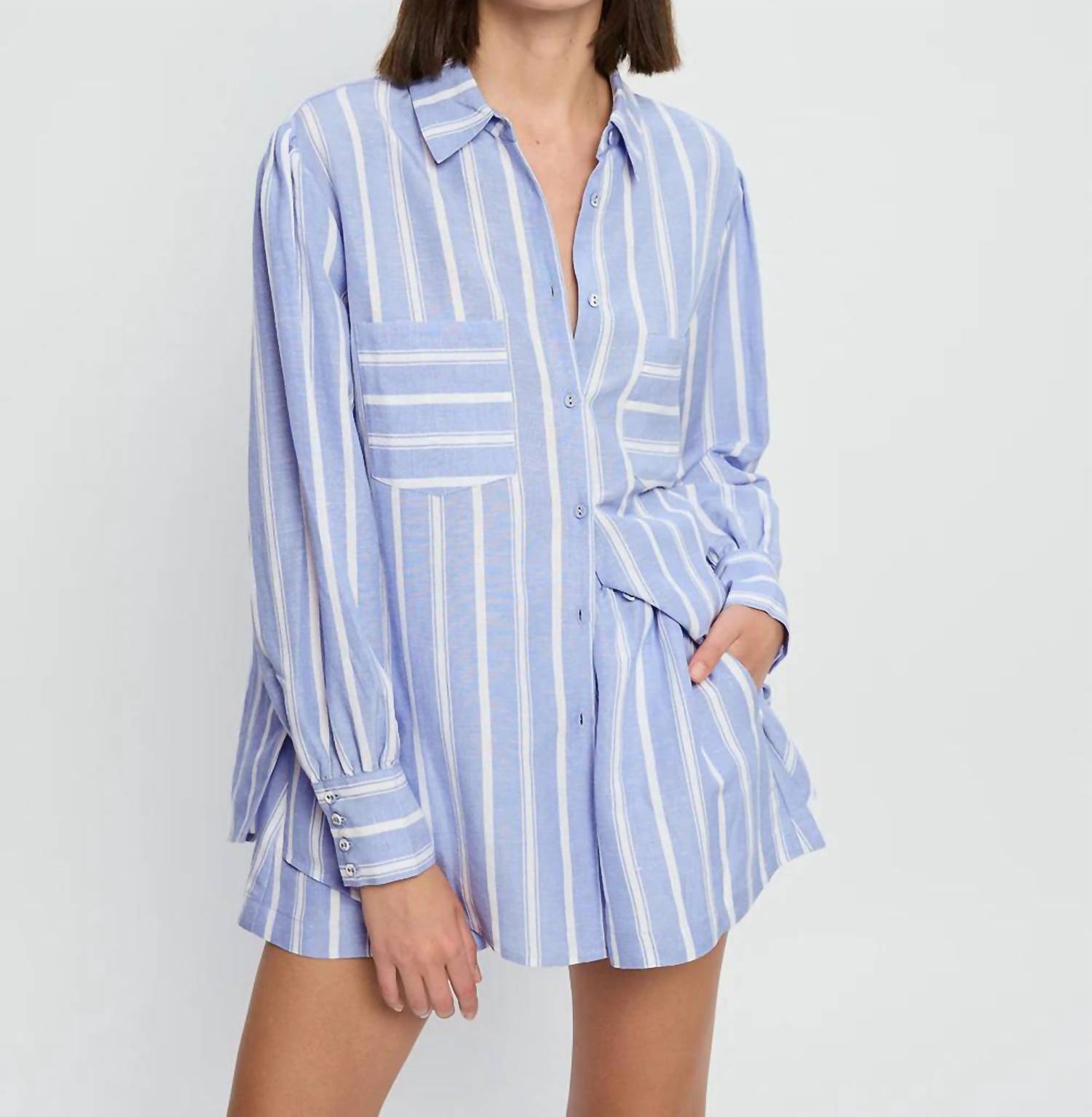 Tuck your favorite tee into these high-waist shorts for a more casual-cool feel. Embrace effortless style with the Capri Stripe Short by KIVARI, featuring a charming blue and white stripe pattern perfect for summer getaways. These shorts boast an elasticated waistband with a rope tie closure for a comfortable fit and come equipped with practical pockets. Composed of 55% Linen and 45% Rayon, their breathable linen blend ensures you stay cool. Care for these shorts by hand washing them and opting for a line dry to maintain their pristine appearance.