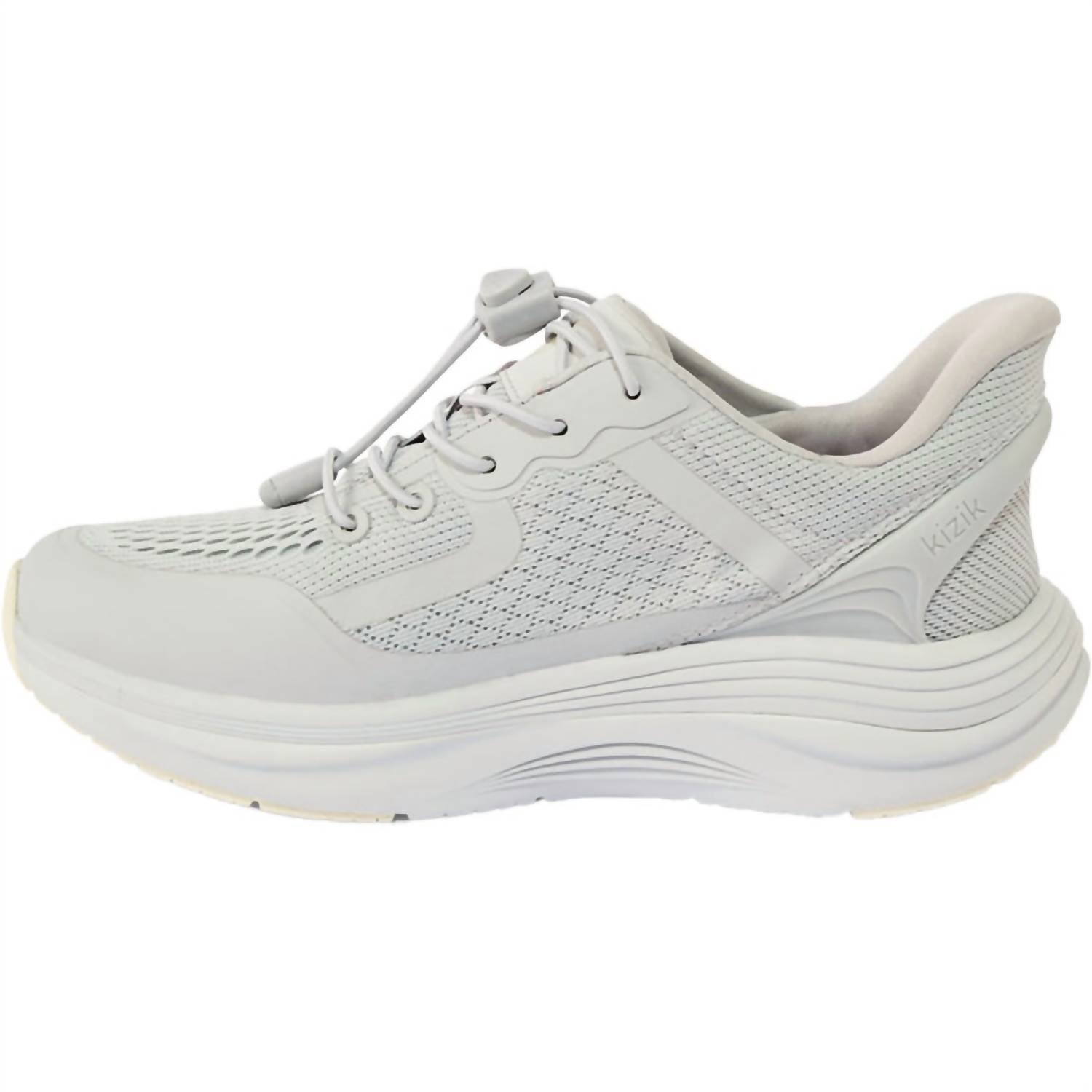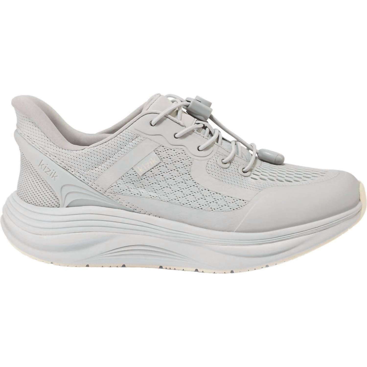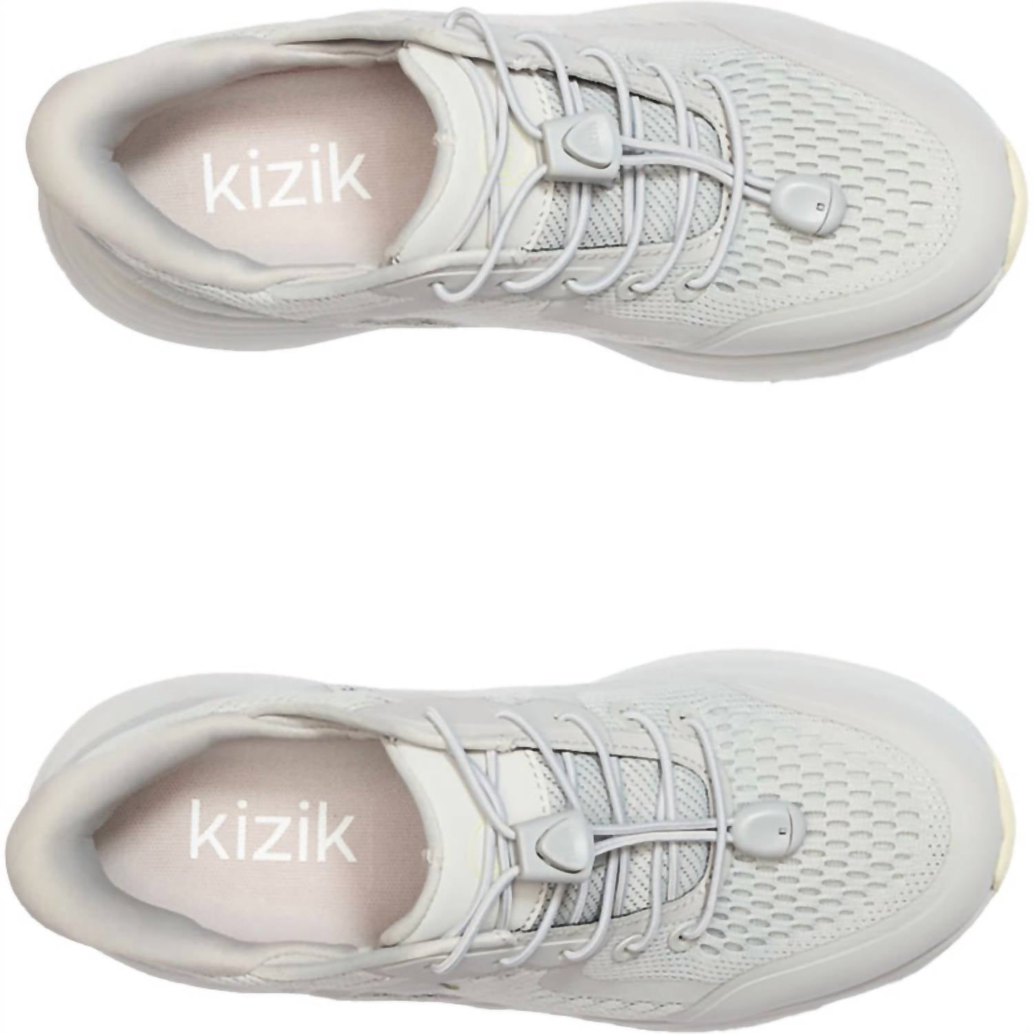 Experience the ultimate in comfort and convenience with the Women's London Walking Shoe by Kizik, presented in a serene harbor mist hue. This innovative shoe features a quick-recovery arc that flexes against the midsole for a secure hands-free fit, ideal for active lifestyles. It's the only shoe combining this level of cushioning and easy wearability, perfect for exploring the city or casual daily wear. Originating from an undisclosed location, this shoe is tailored for women seeking both style and comfort.