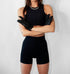 Revamp your active wardrobe with the Black Half Tights by knotWTR, designed for peak performance and style. These pull-on bike shorts for women, crafted from a nylon blend, offer a solid black hue that seamlessly fits various occasions. With a supportive, non-slip waistband and mid-thigh length, they ensure balanced coverage and mobility. Care instructions include hand washing and line drying to maintain their moisture-wicking and comfortable fit.