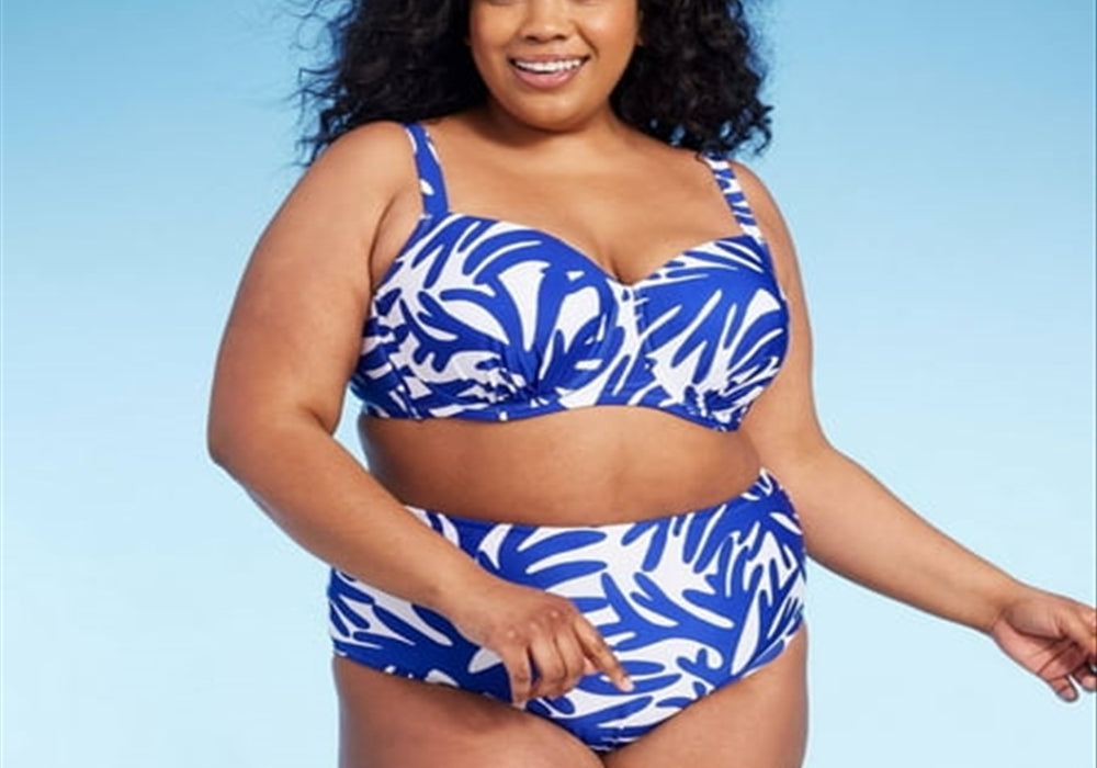 Disponibilidade em tamanhos grandes | Aro para suporte | Cor azul brilhante | Alças ajustáveis | Fecho de colchete nas costas | Tecido de alta qualidade | Uso confortável | Caimento regular | Design estiloso | Material durável