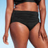 Calcinha de biquíni feminina Kona Sol com franzido e cintura alta, cobertura alta, preta, tamanho G