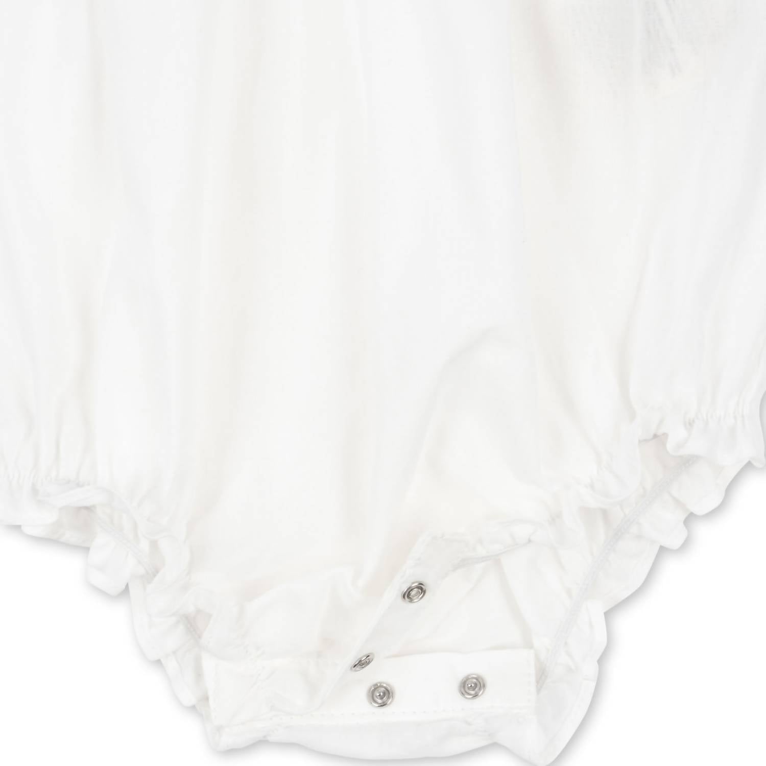 Introducing the Girls' Posey Romper by Konges Sløjd, a charming addition for any little one's summer wardrobe. Crafted from 100% organic cotton, this textured romper comes in an optic white hue, embracing the boho chic trend effortlessly. Designed in Denmark, it features convenient press buttons at the leg openings for easy dressing from sizes 1m-3Y. Care instructions include machine washing and tumble drying for ease of maintenance. Perfect for vacation wear, it ensures comfort for adventurous toddlers and curious children alike.