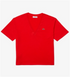 Camiseta feminina Lacoste de algodão liso com ajuste relaxado e gola V, vermelha, tamanho 38