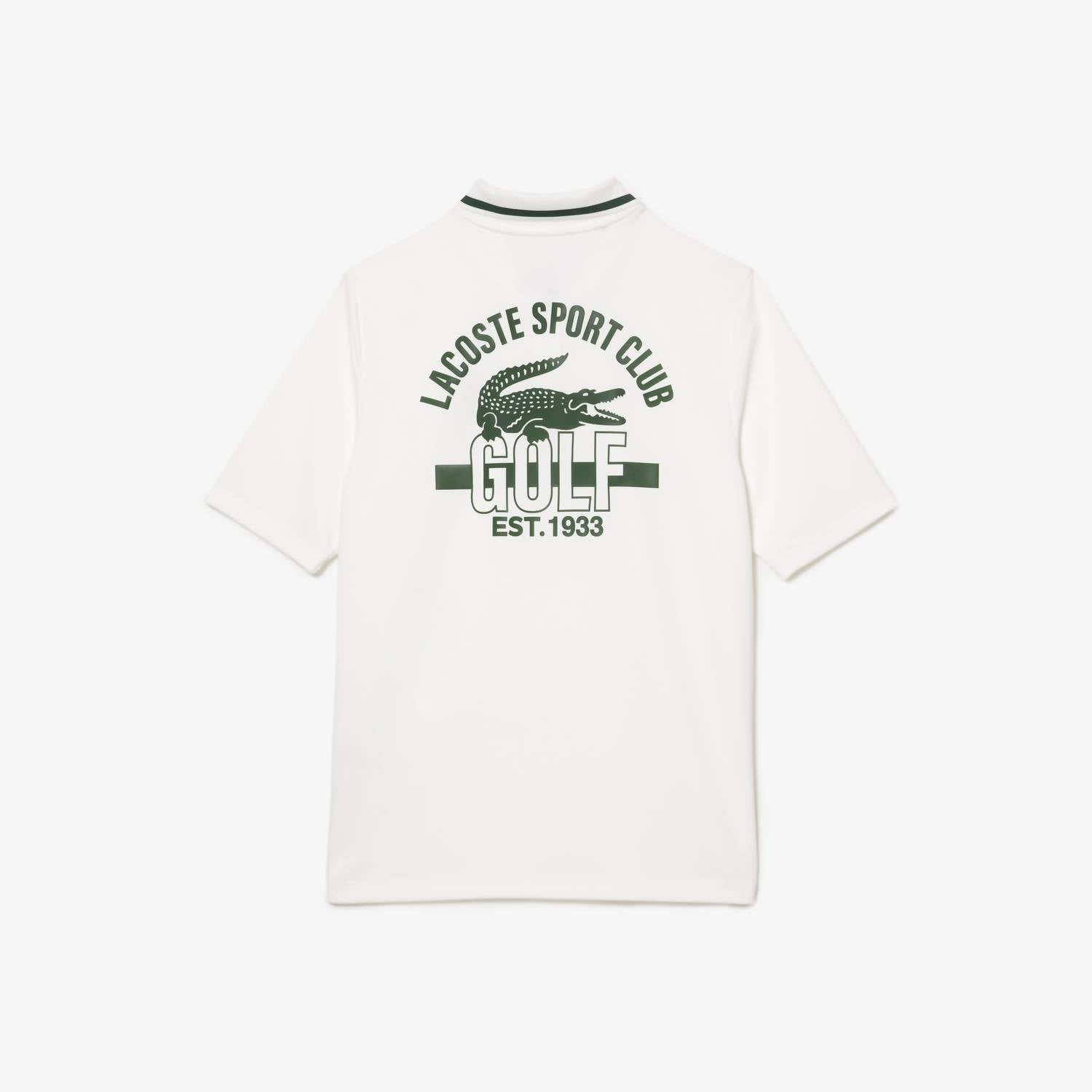 Step onto the green in style with the Women's Ripstop Pique Ultra Dry Golf Polo Shirt by LACOSTE in sleek white. This short sleeve polo is crafted from 100% polyester, ensuring both breathability and a quick-dry finish, making it ideal for activewear. Made in Sri Lanka, it features a zip closure and contrast striped collar for a modern touch, along with subtle and oversized graphic prints. Care instructions include machine washing and laying flat to dry, promising effortless maintenance for your athletic wardrobe.