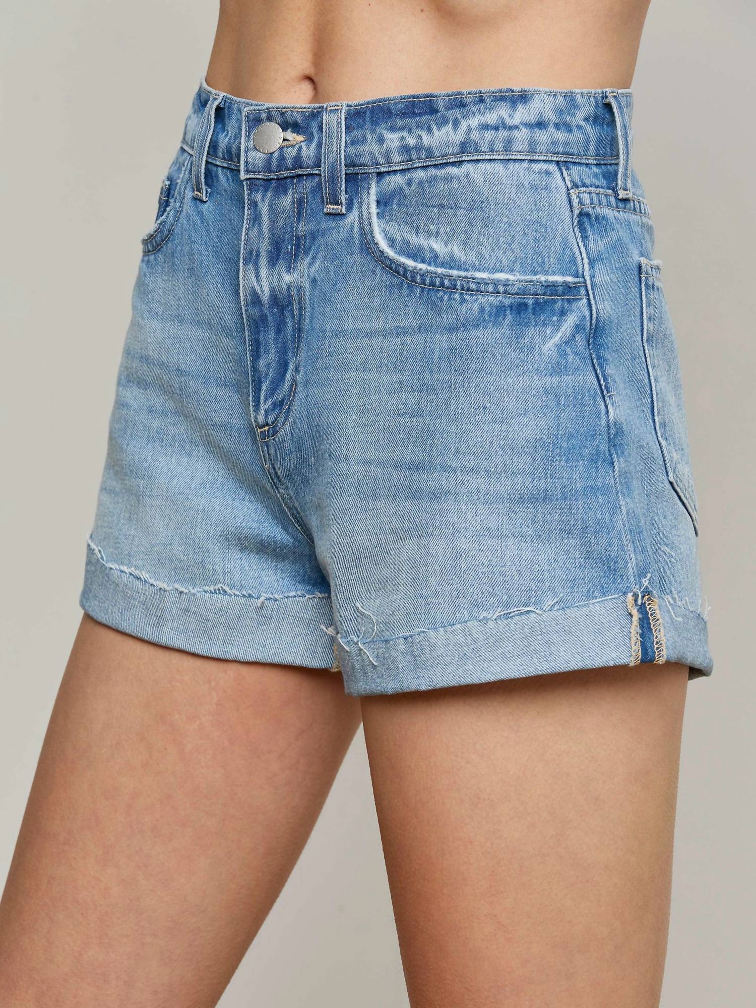 Elevate your warm-weather wardrobe with the Jazzy High Rise Cuffed Shorts by L'Agence, presented in a Cristo color for a vintage feel. These women's jean shorts feature a high rise and a 5-pocket design, providing both style and functionality. Crafted from 100% cotton denim, these shorts offer classic comfort and a zip fly with button closure. Proudly imported and easy to care for, simply machine wash them to keep them looking fresh. Inseam: 3 inches.