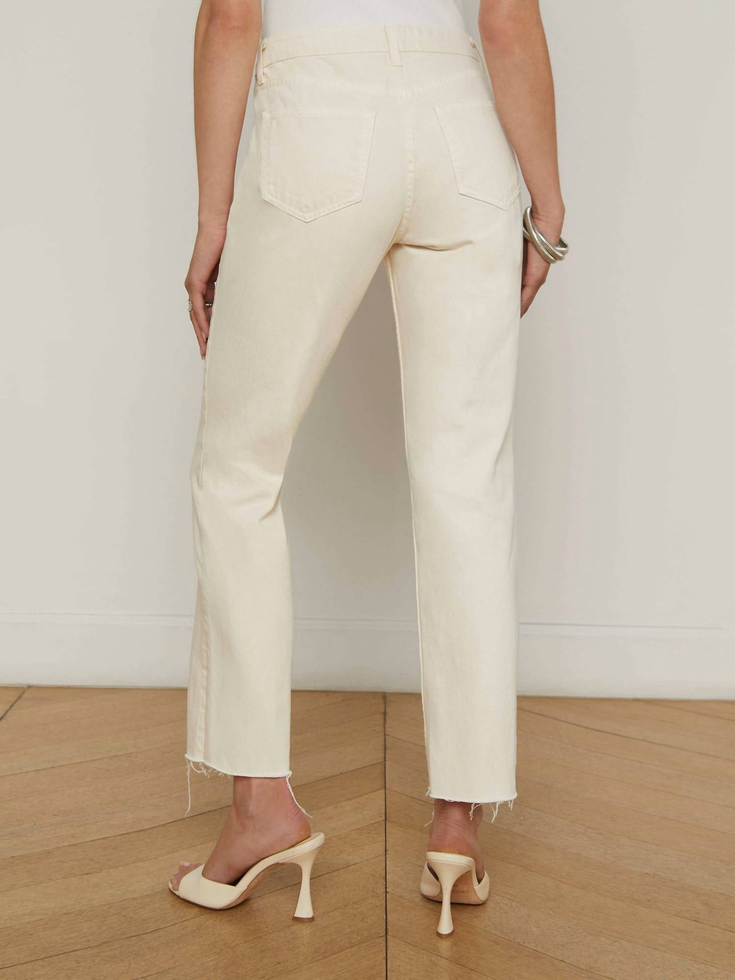 Esta calça jeans feminina apresenta um design reto de cintura média com um caimento folgado que assenta elegantemente no quadril. Confeccionada em Los Angeles com 100% algodão, a calça possui bainha crua e uma construção clássica de 5 bolsos. Para um uso sem esforço, aproveite a praticidade do fecho de zíper e botão, com cuidados tão simples quanto lavar na máquina. As dimensões incluem 23,8 cm de altura, 73,4 cm de costura interna e 36,7 cm de abertura da perna.