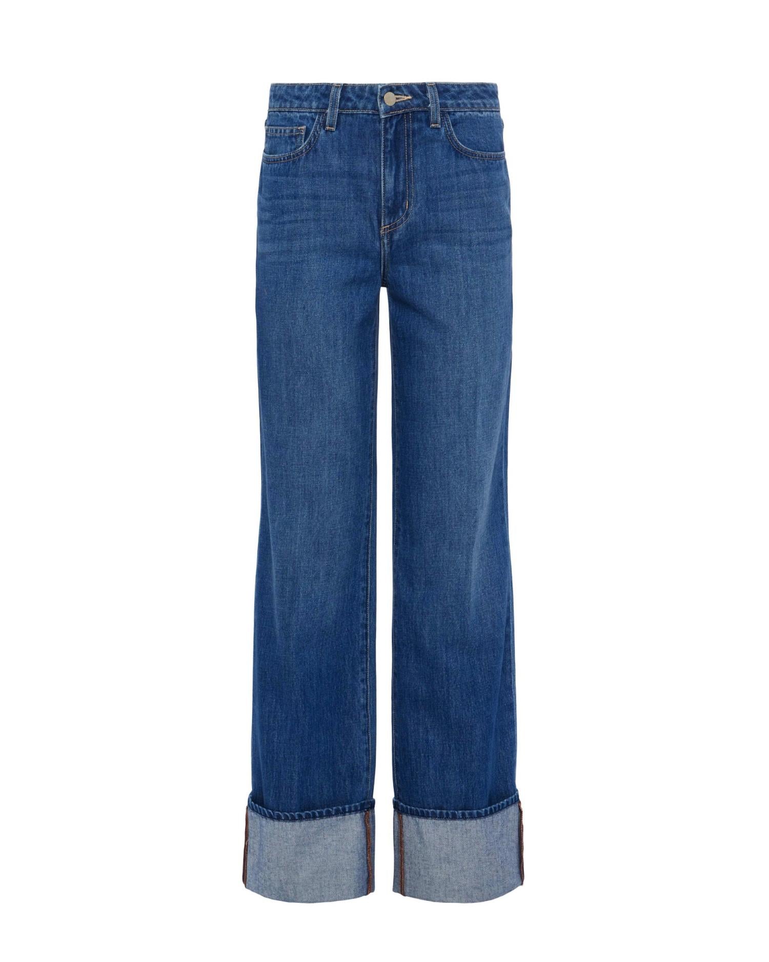 A flattering silhouette that's suprisingly versatile. The Miley Leg Cuff Denim Jeans by L'Agence offer effortless style with their ultra-high-rise design and wide-leg silhouette. Crafted from 100% cotton, these jeans feature a 10.5" rise, a 31" inseam, and a 20" leg opening with deep fold-up cuffs. The true-blue wash, high-low contrast, and contrast topstitching enhance the five-pocket design. Finished with a discrete button closure and zip fly, these jeans bring timeless appeal and are made in Los Angeles.