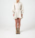 Meet the Camille Linen Dress by Lanhtropy, a chic mini dress in a natural hue perfect for a minimalist summer look. Featuring long, voluminous sleeves, it's crafted from premium 100% natural linen for a breathable, luxurious feel. The classic collar with a half-button placket and a flattering waist belt elevate this A-line silhouette. Closure: Button closure. Care: Dry clean only.