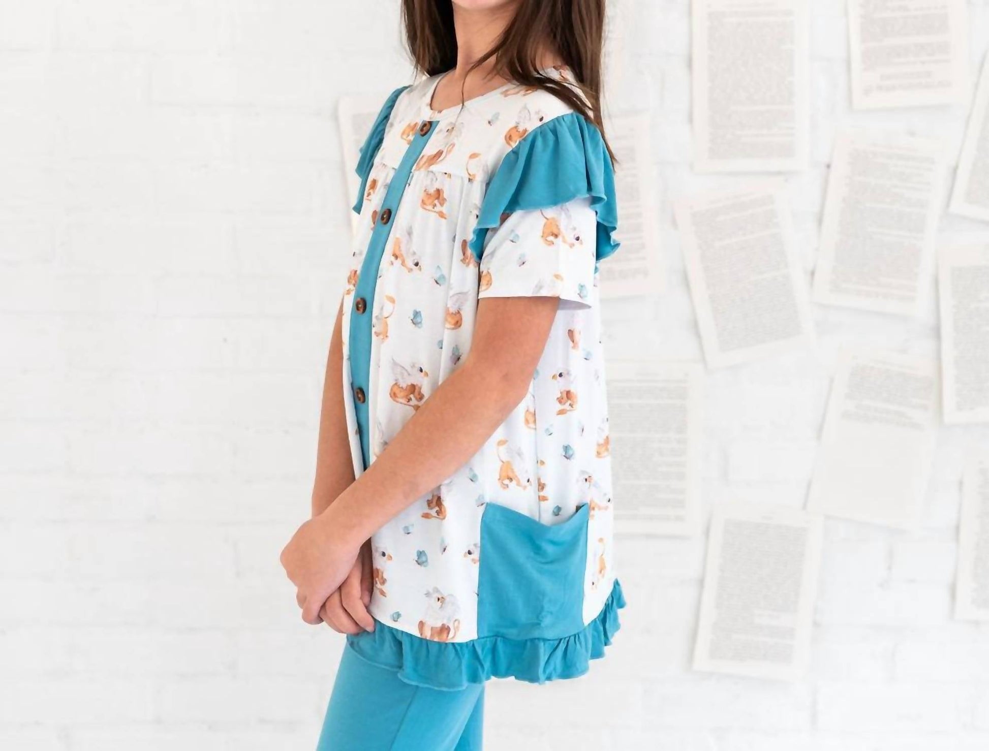 Laree + Co. - Girls Griffin Butterflies Bamboo Short Sleeve Tunic Legging Set