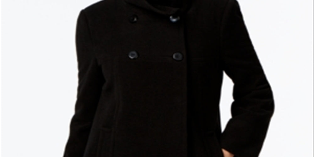 Casaco de lã feminino Larry Levine, trespassado, comprimento médio, preto, tamanho GG
