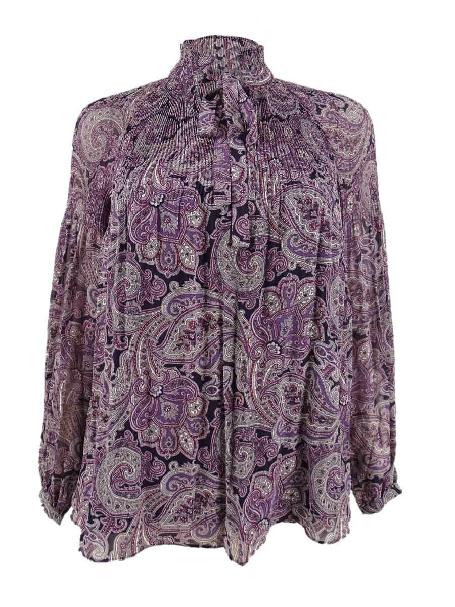 Blusa feminina Petite estampada com decote em V, tamanho Petite X-Small, tamanho roxo, da Lauren By Ralph Lauren