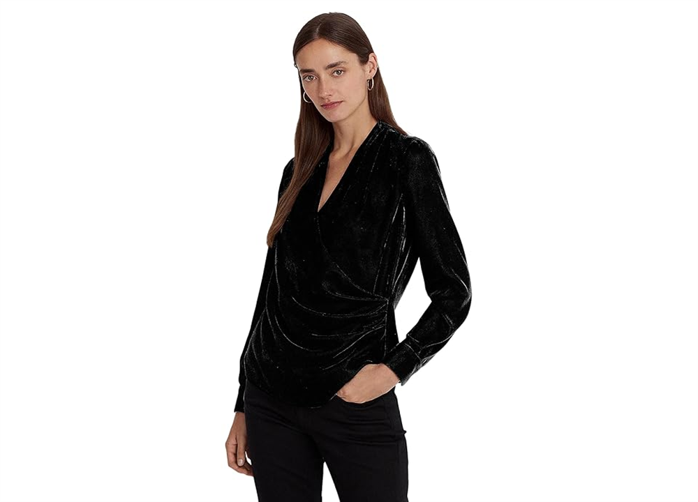 Blusa de veludo com sobrepeliz feminina Lauren Ralph Lauren, preta
