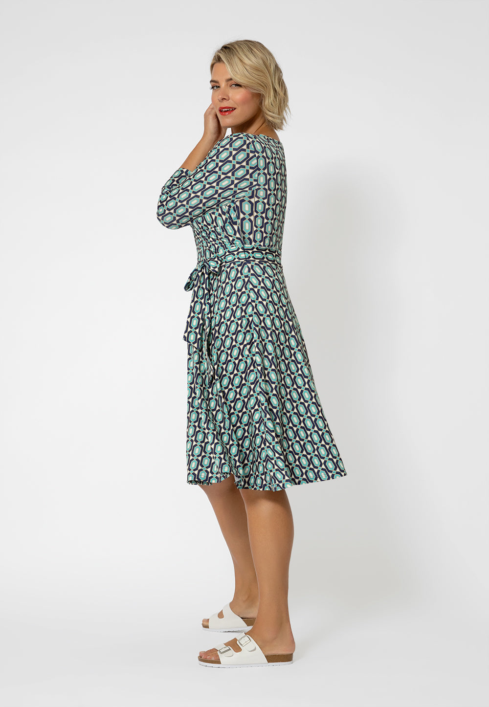 Vestido envelope perfeito com manga 3/4 feminino Leota (curvo) verde tamanho 1X