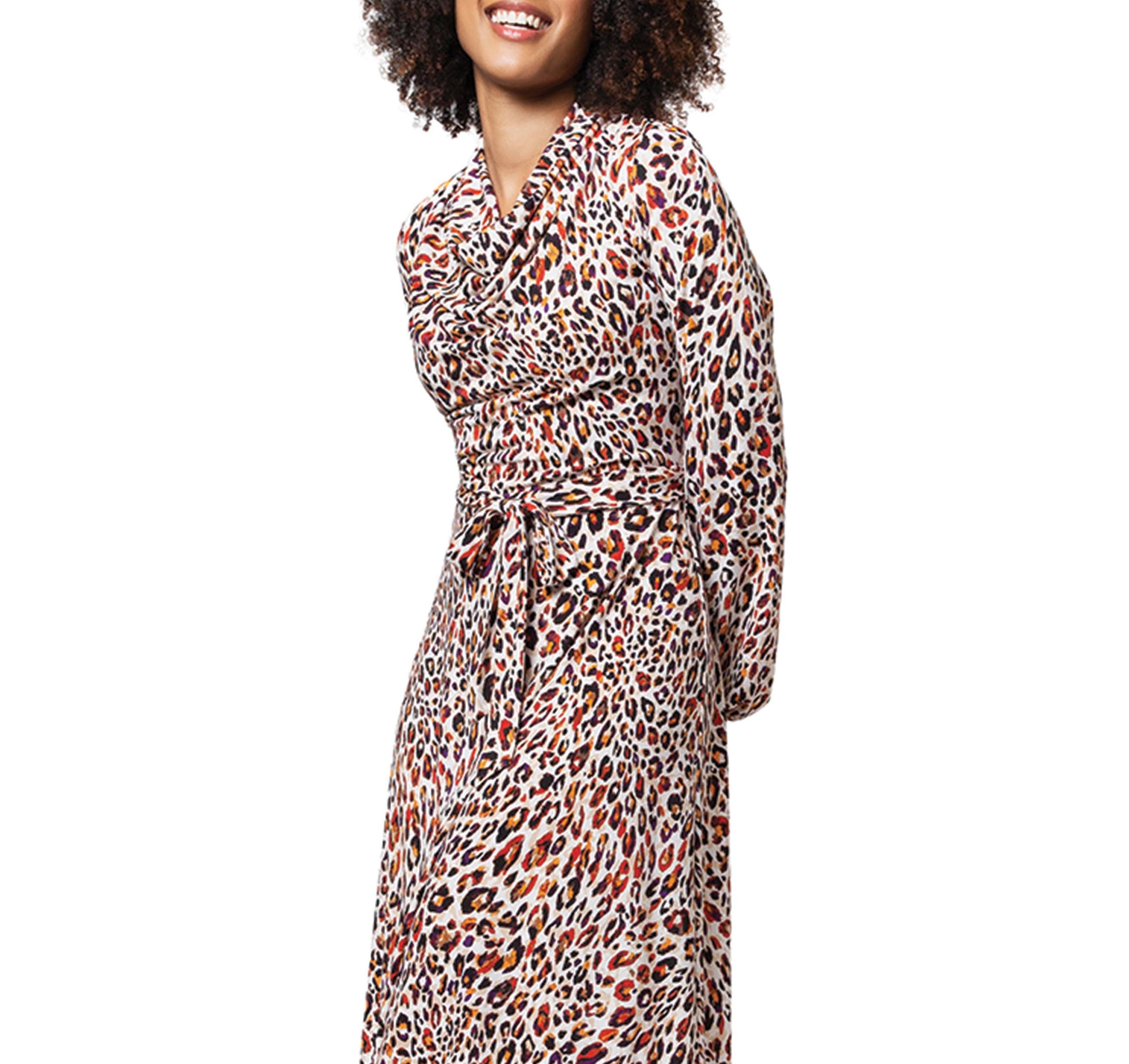Vestido feminino Leota Mallory com estampa animal e manga comprida, marrom, tamanho médio
