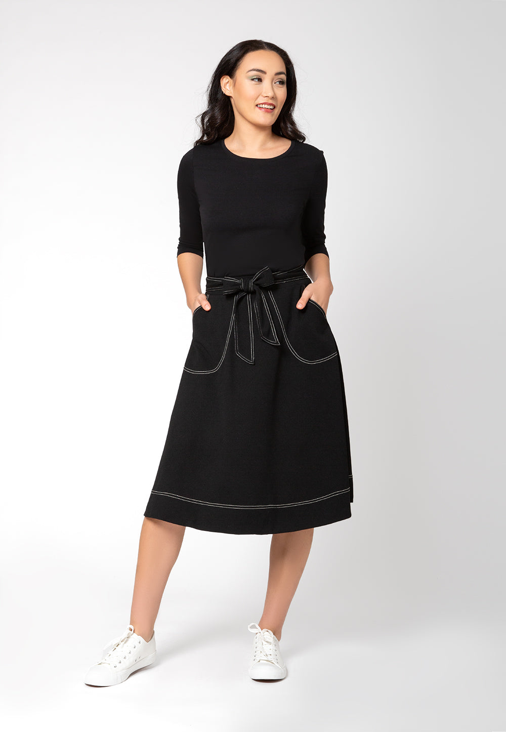 O vestido Mindy, queridinho das fãs, agora em formato de saia! Elegante | clássico | e moderno | a saia rodada tem um cinto estilo obi e um caimento lindo. Já mencionamos | que também é superconfortável e lavável à máquina? Temos um vencedor! Com um pouco mais de estrutura | nosso crepe musgo leva a lavagem e o uso a outro nível. | Comprimento midi