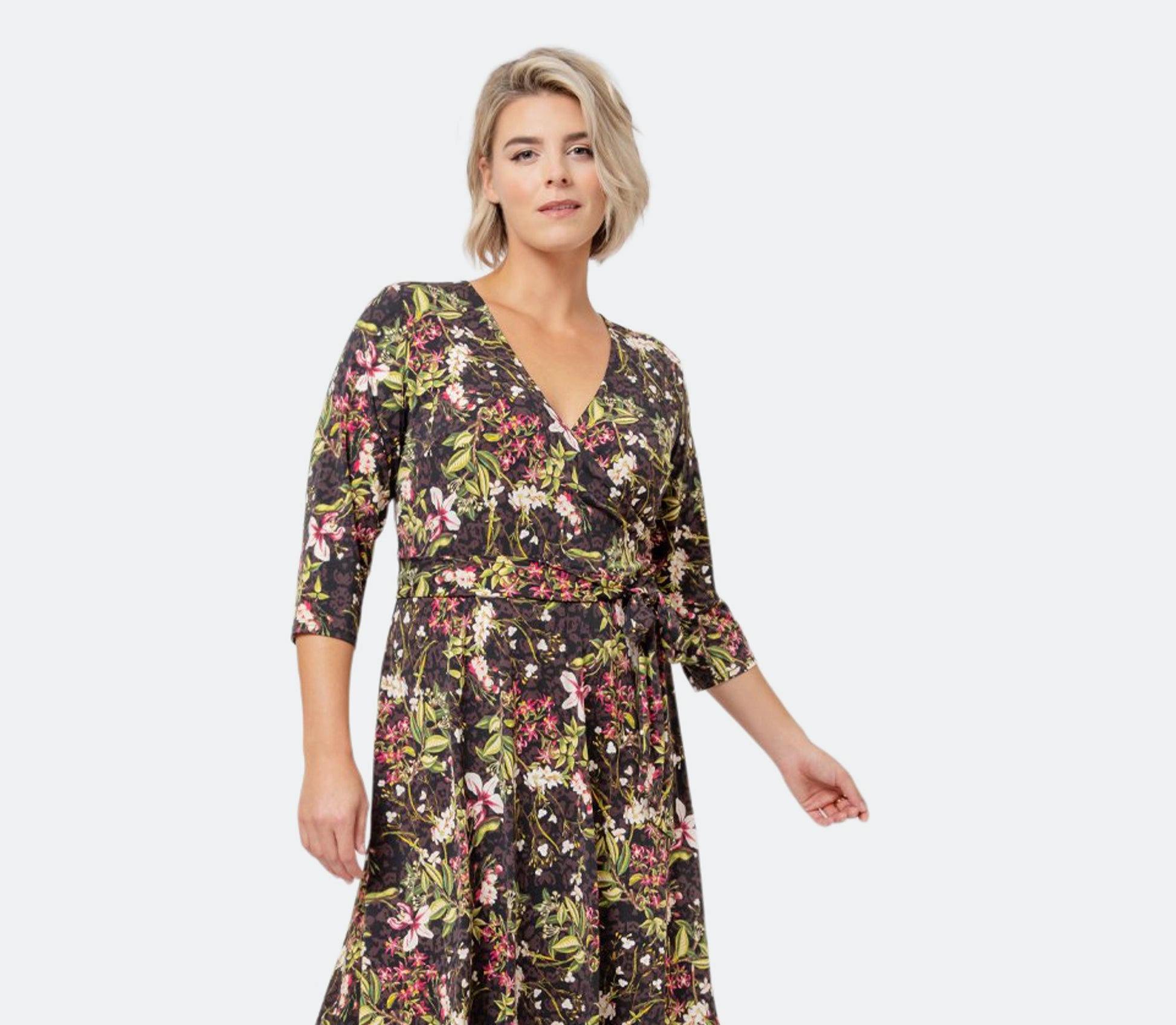 Vestido envelope falso perfeito para mulheres Leota, preto, tamanho 1X