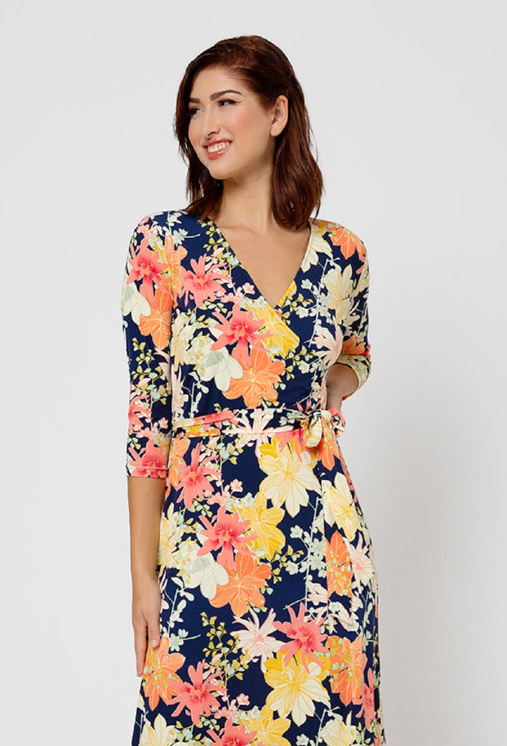 Descrição | Um vestido Perfect Wrap favorito do público da Leota, reinventado com uma saia longa glamourosa e uma manga tipo pulseira | Não há uma estampa ou pessoa que não combine com este vestido | confie em nós | O Essential Jersey da Leota é o tecido mais fácil de usar | fácil de cuidar, com a combinação perfeita de ajuste | conforto e elasticidade