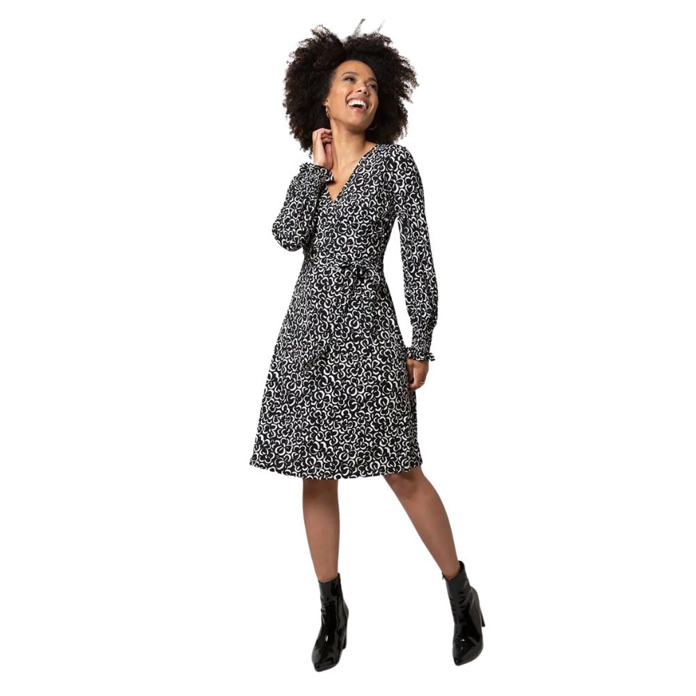 Vestido midi envelope perfeito feminino Leota, preto, tamanho grande