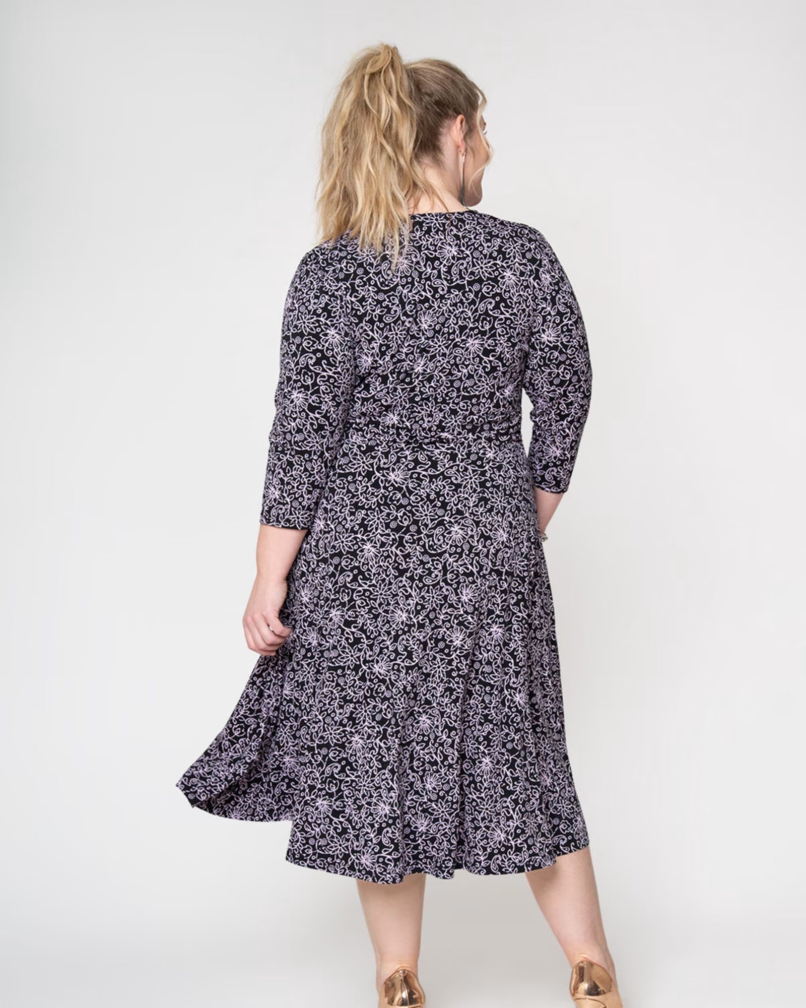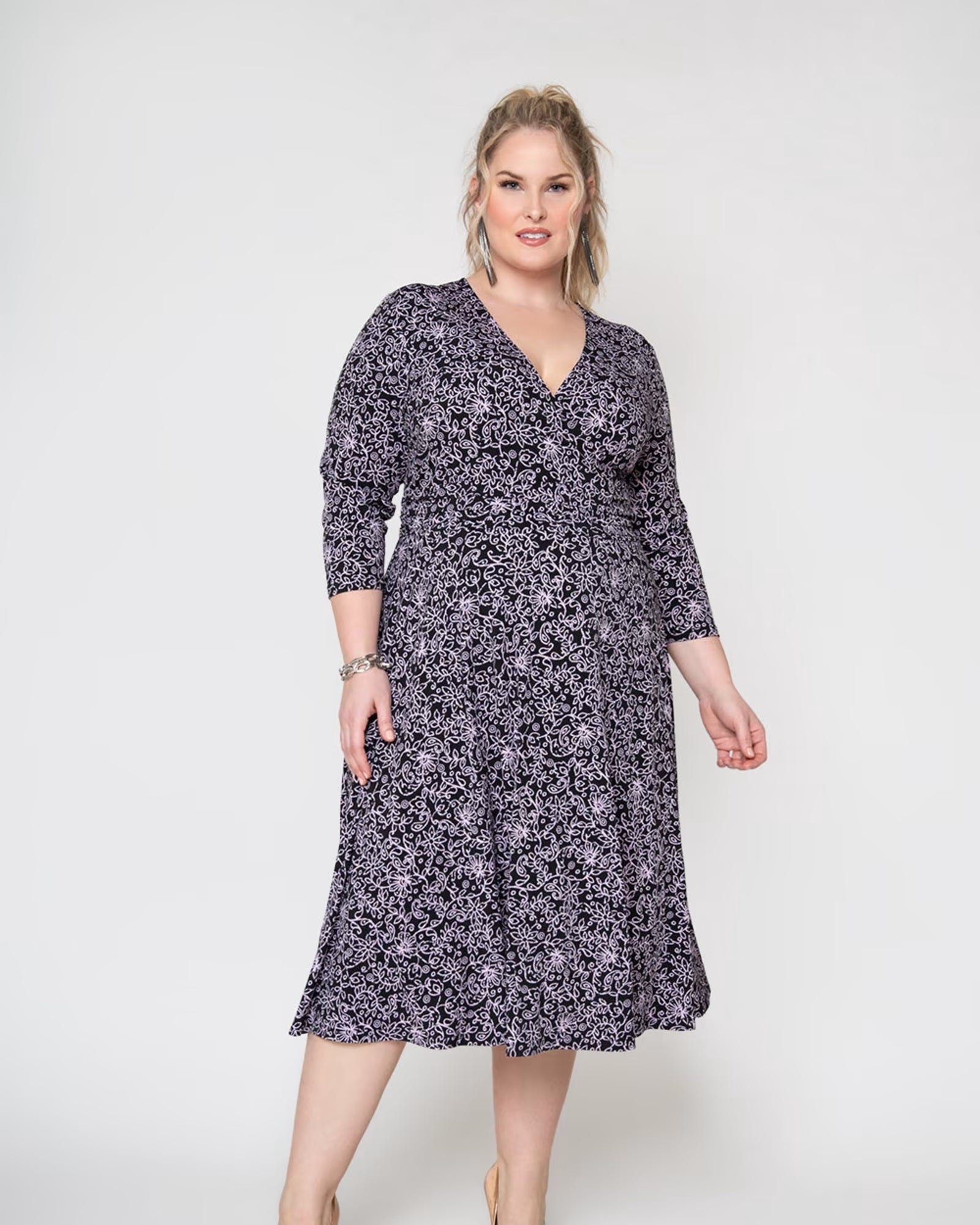 Vestido midi feminino Leota Plus Size Amiya com manga 3/4, preto, tamanho 1X