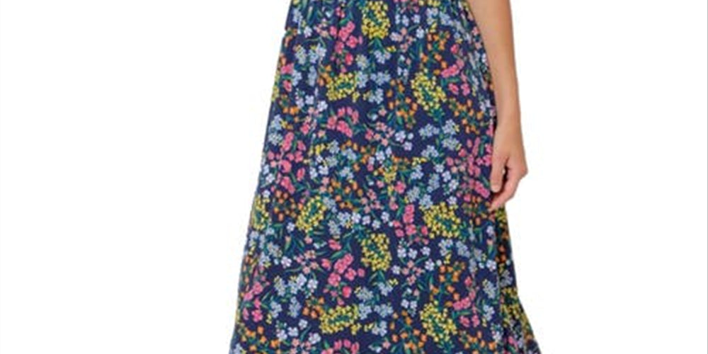 Vestido sem mangas com estampa floral Samantha da Leota para mulheres, azul, tamanho X-S