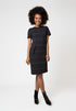Vestido Maddie de manga curta feminino Leota em jacquard luxuoso com linhas de diamante, preto