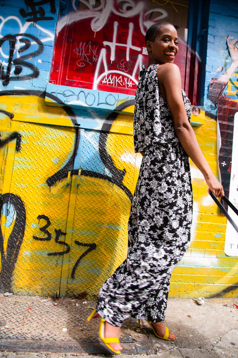 O macacão Skyler na altura do tornozelo é uma peça deslumbrante | O decote alto e o pop-over são uma combinação marcante | O macacão é uma peça única