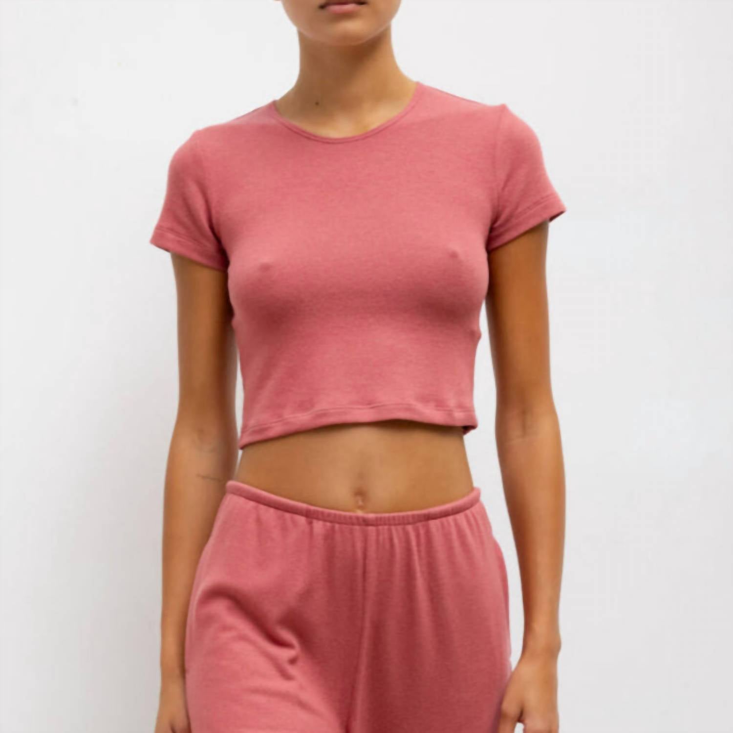 Não procure mais, você acabou de encontrar a camiseta perfeita! A camiseta LESET Lauren Crop Slim na vibrante cor Radish é um item essencial chique para o verão, perfeita para viagens e tendências de streetwear. Com mangas curtas e um design clássico de gola redonda, esta camiseta é confeccionada em uma mistura luxuosa de 47% poliéster, 47% rayon e 6% elastano. Ela oferece um corte justo e curto, com comprimento de 42 cm e largura de ombro de 33 cm, protegido por um prático fecho de puxar. Para um cuidado ideal, lave à mão e seque no varal esta blusa com estampa sólida, fabricada nos EUA. A modelo tem 1,75 m e veste tamanho P.