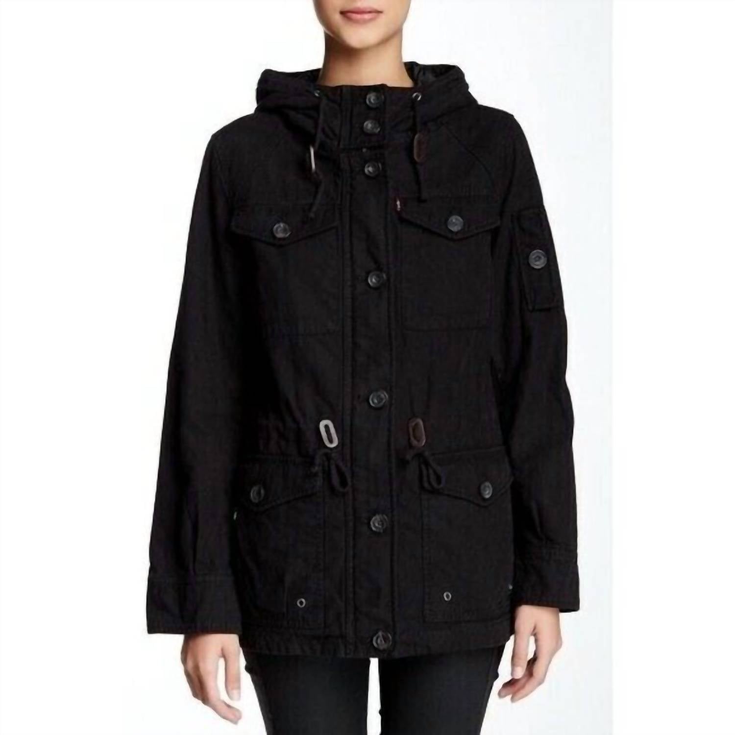 A jaqueta utilitária mais descolada e versátil. Combine com seu jeans favorito ou use-a sobre qualquer vestido do dia a dia. Experimente a versatilidade robusta da Jaqueta Militar Isolada com Capuz e Capuz de Algodão LEVI'S, projetada para combinar estilo e funcionalidade. Esta jaqueta de manga comprida é confeccionada em 100% algodão com forro 100% poliéster e mede 71 cm de comprimento, oferecendo um ajuste confortável e quente. Com gola alta, capuz e cordão, inclui um prático fecho frontal com zíper e botão, punhos abotoados e um prático bolso com botão na manga esquerda. Completa com cordão na cintura e quatro bolsos frontais, esta jaqueta utilitária é lavável à máquina para facilitar a manutenção e combina sem esforço o estilo militar clássico com a praticidade moderna.