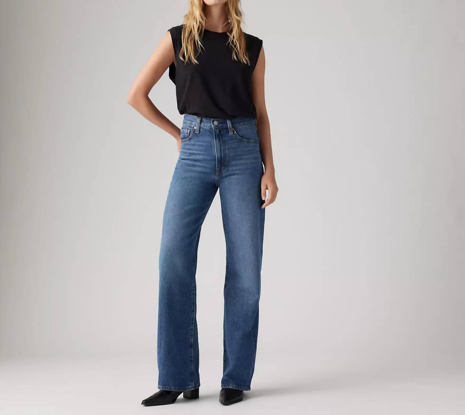 Combine esta calça jeans de perna larga com mules, slides ou suas sandálias de tiras favoritas.