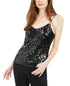 Leyden Feminino Preto Lantejoulas Alcinhas Espaguete Gola Redonda Regata de Festa Tamanho X-S