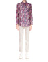 Embrace the vibrant style of the Gimmie Liberty New Classic Shirt by Libertine, designed for the free-spirited woman. This button-down shirt showcases a dark floral pattern that captures the essence of spring, perfect for vacation wear. It boasts long sleeves and is crafted from luxurious cotton for comfort and breathability. Closure: Button closure.