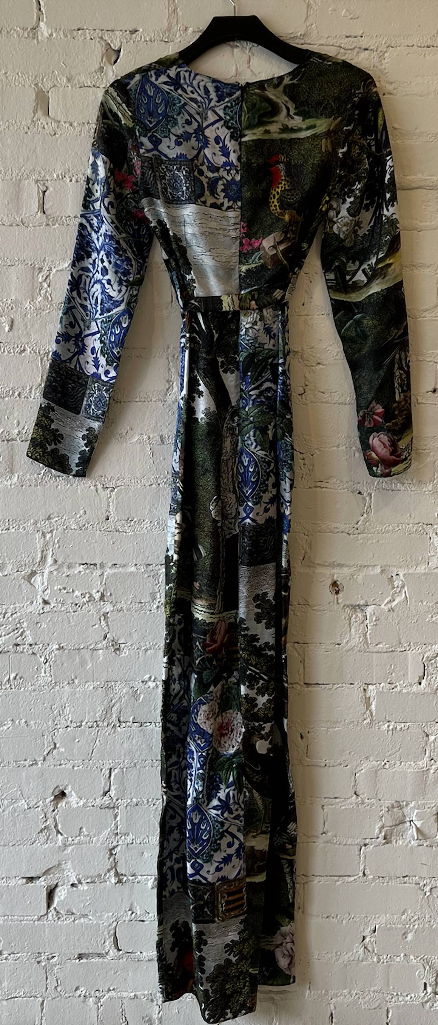 Embrace vibrant style this summer with the Women's Ottoman And Pirate Bird Full Length Dress by Libertine. Featuring three-quarter sleeves and a fashion-forward squareneck, this patterned wrap dress is a maximalist's dream. It offers a versatile tie closure, ensuring a custom fit with every wear. Perfect for vacation, this multi-colored midi dress combines adventurous flair and comfort effortlessly.