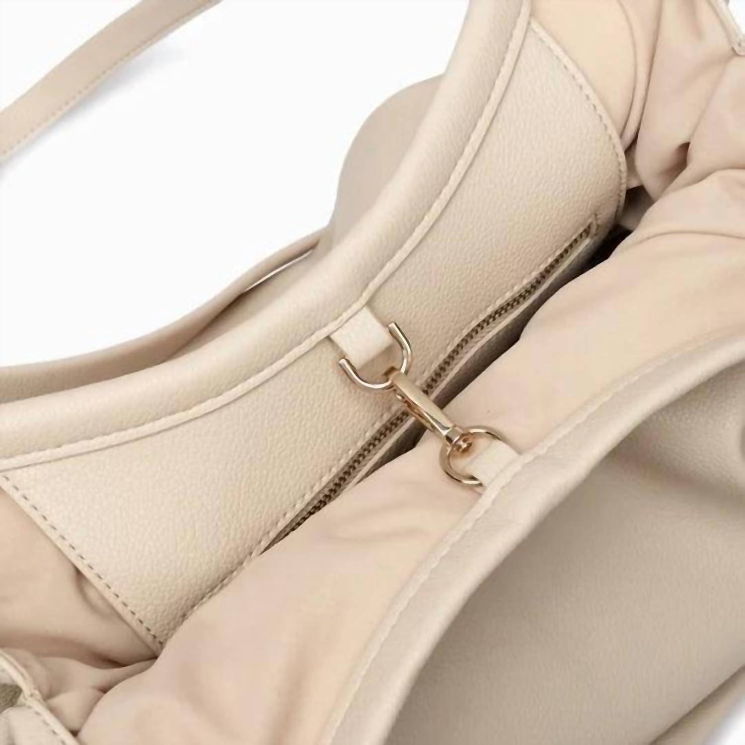 The Women's Juyada Vegan Hobo Tote Bag by Like Dreams in a sophisticated Creme hue is a minimalist staple for your collection. Crafted from durable pebbled vegan leather with a soft vegan suede internal lining, it balances style and functionality effortlessly. This tote features a convenient golden metal clip lock closure and 16" adjustable shoulder straps, making it perfect for everyday use. With a spacious interior that comfortably fits a 14" laptop, the tote measures 15.7" L x 13" H x 2" D and weighs just 9.2 oz.