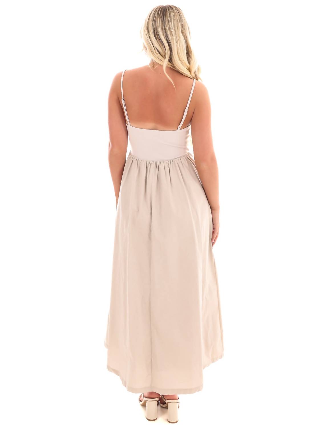Descubra o Vestido Midi Explore the City da Listicle, perfeito para adicionar sofisticação ao seu guarda-roupa de férias de primavera. Este vestido evasê na cor pedra apresenta alças finas e decote quadrado para um efeito elegante. O top elástico é combinado com uma saia de popeline de algodão de cintura alta, oferecendo conforto leve e elegância, enquanto os bolsos laterais funcionais aumentam sua praticidade. Feita para calçar com facilidade, esta peça estilosa é totalmente forrada para um uso elegante e confortável.