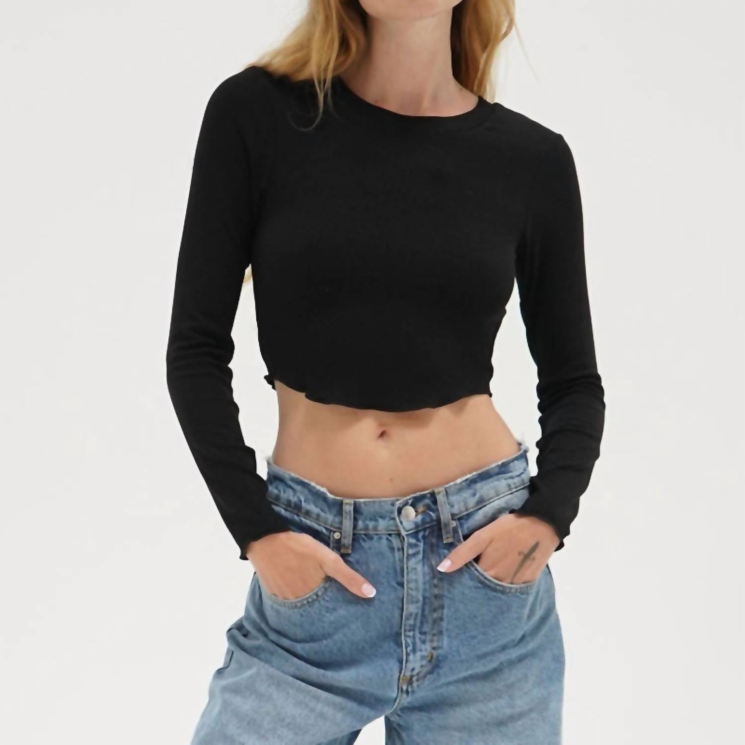 The perfect long sleeve tee that goes with just about anything. Introducing the Arya Ribbed Long Sleeve Top by LNA, a chic addition to your wardrobe in classic white. This fitted crop top sports a crewneck and is crafted from a blend of 95% Rayon and 5% Spandex for a light, airy feel perfect for layering. Made in the USA, it offers a pull-on closure for easy wear. Care is simple with machine wash cold on gentle cycle and low tumble dry recommended.