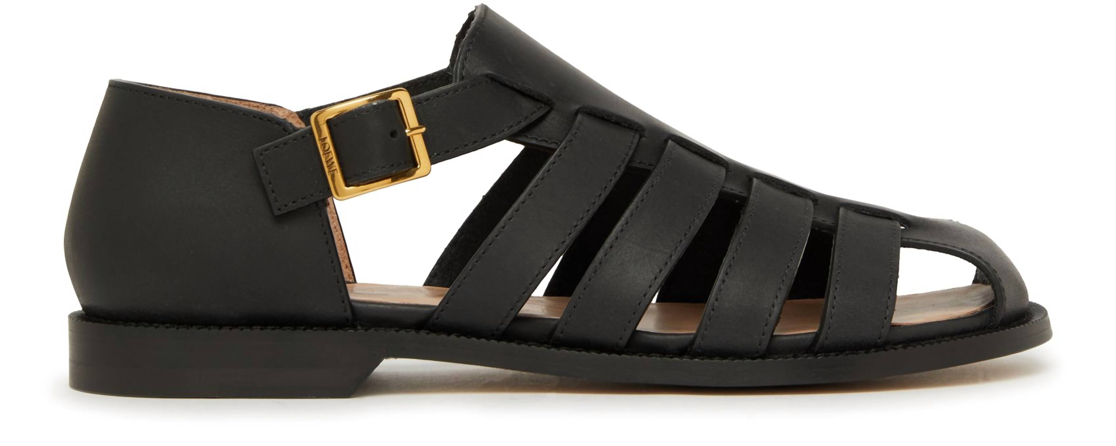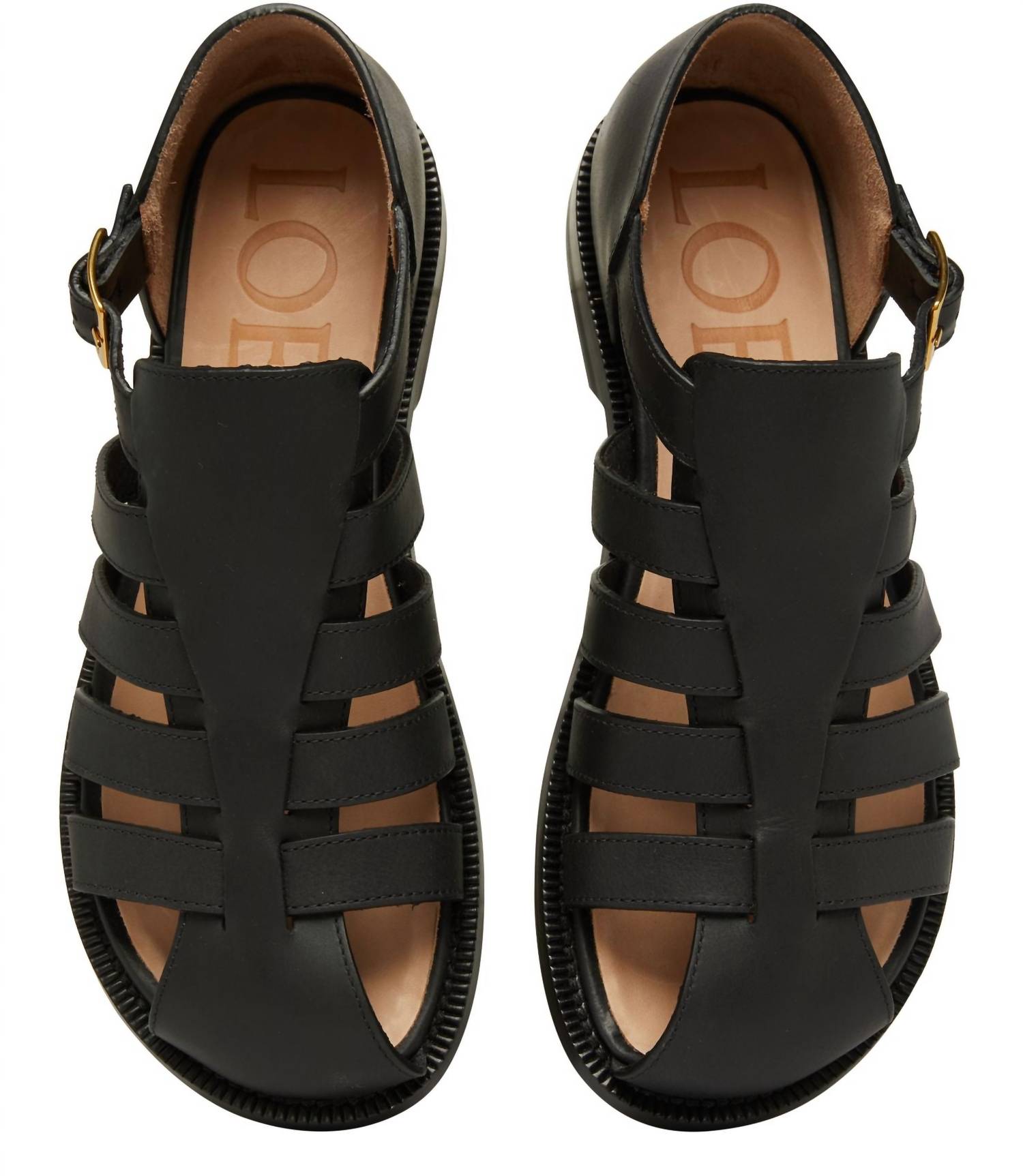 Esta sandália vai levar você do brunch ao jantar e a tudo o mais. A Sandália Campo Feminina da Loewe é uma luxuosa mistura de estilo e conforto, perfeita para qualquer ocasião. Estas sandálias pretas apresentam bico redondo aberto com design de gáspea em gaiola e uma palmilha elegante com o logotipo gravado, com um deslumbrante acabamento dourado. A base plana de couro de 10 mm garante estabilidade, enquanto a tira com fivela do logotipo adiciona um toque de requinte. Confeccionadas com precisão, estas sandálias elevam o seu look com elegância natural.