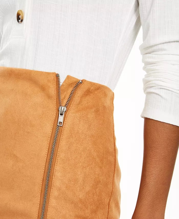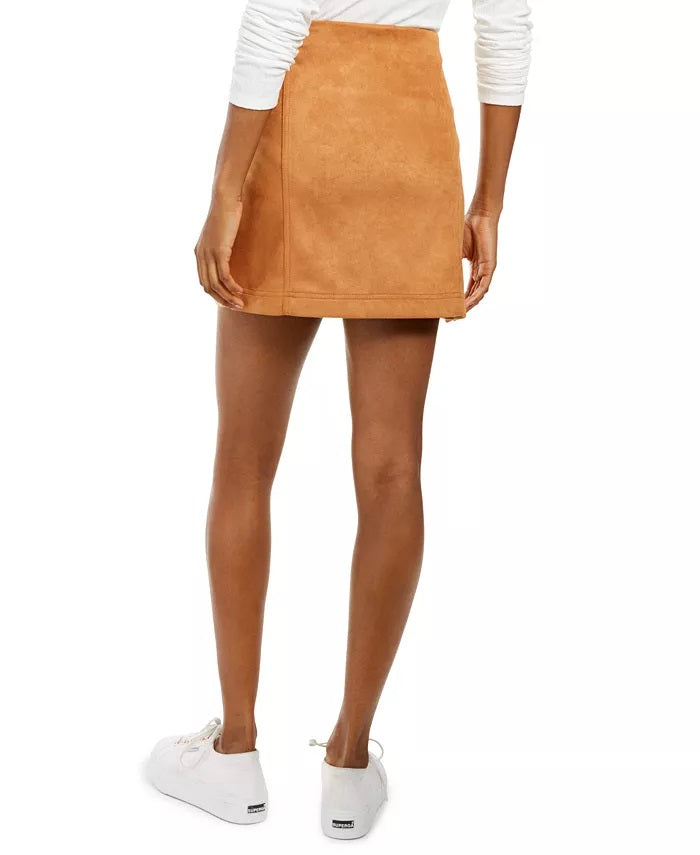 Minissaia com zíper de camurça sintética Love Fire Juniors, tamanho extragrande, marrom
