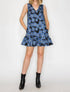 Introducing the Flower Patch Jacquard Dress by Love Wednesday, a striking piece in dark denim adorned with oversized floral patterns. This sleeveless shift dress features a flattering V-neckline and a ruffled hemline, complementing its relaxed fit. Closure: Zip closure. Perfect for vacation and summer days, it’s a versatile piece that adds charm to your wardrobe.