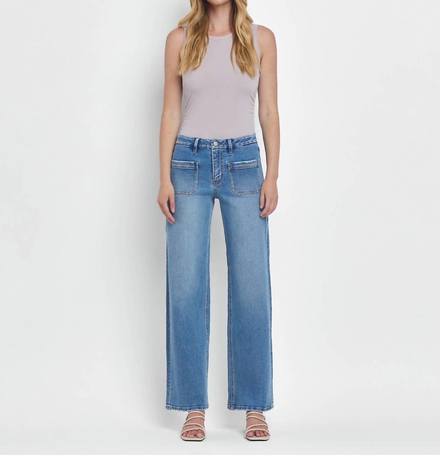 Esta calça jeans de perna larga tem cintura alta, bainha acabada e fecho de zíper com bolsos. Confeccionada em 97% algodão, 2% poliéster e 1% elastano, tem 25 cm de altura e 81 cm de costura interna. Lavável à máquina. Importado.