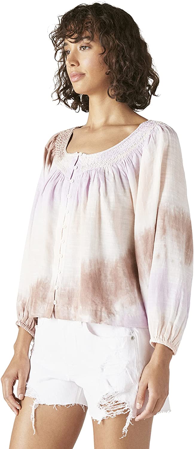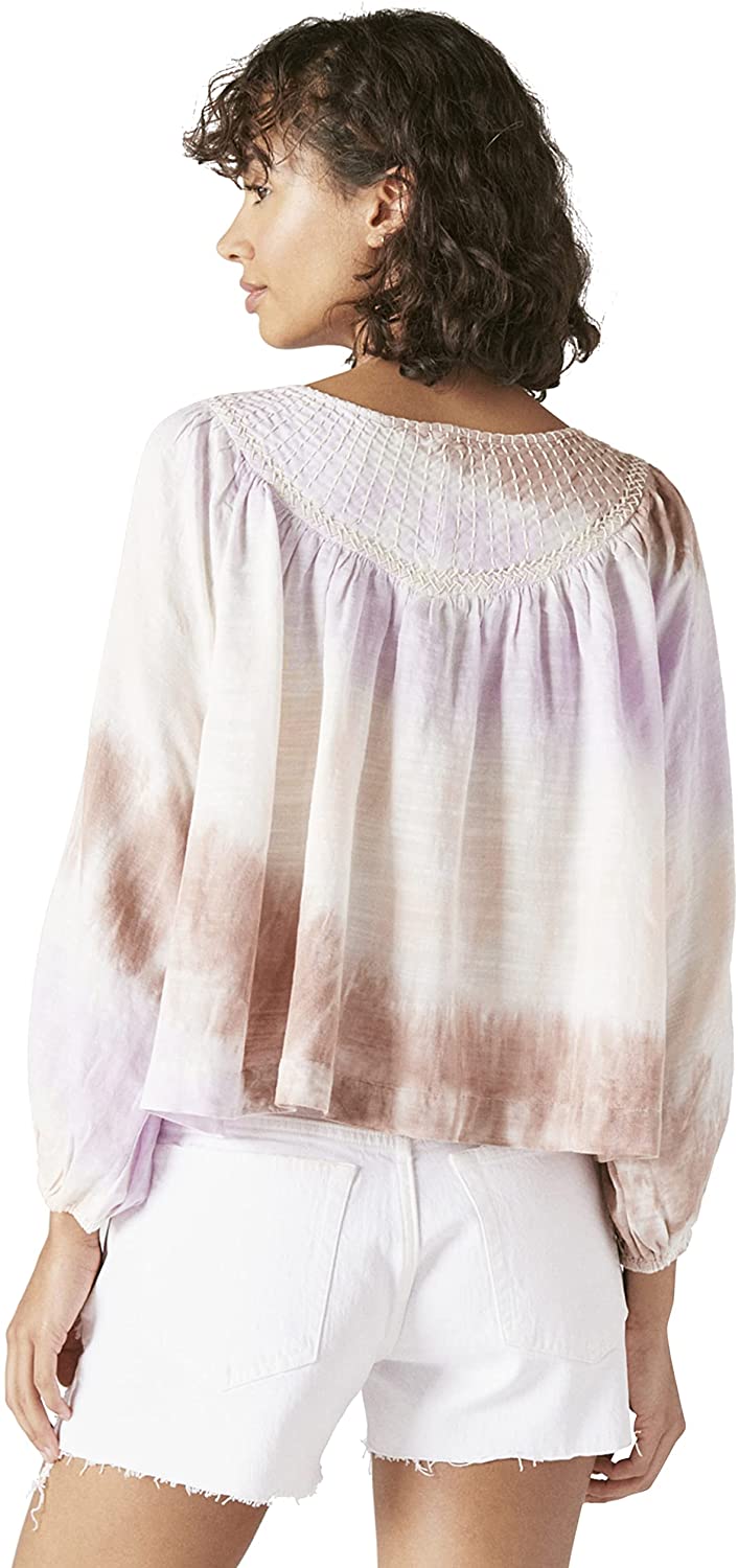 Blusa camponesa bordada feminina Lucky Brand, lilás, multicolorida, média