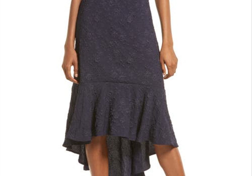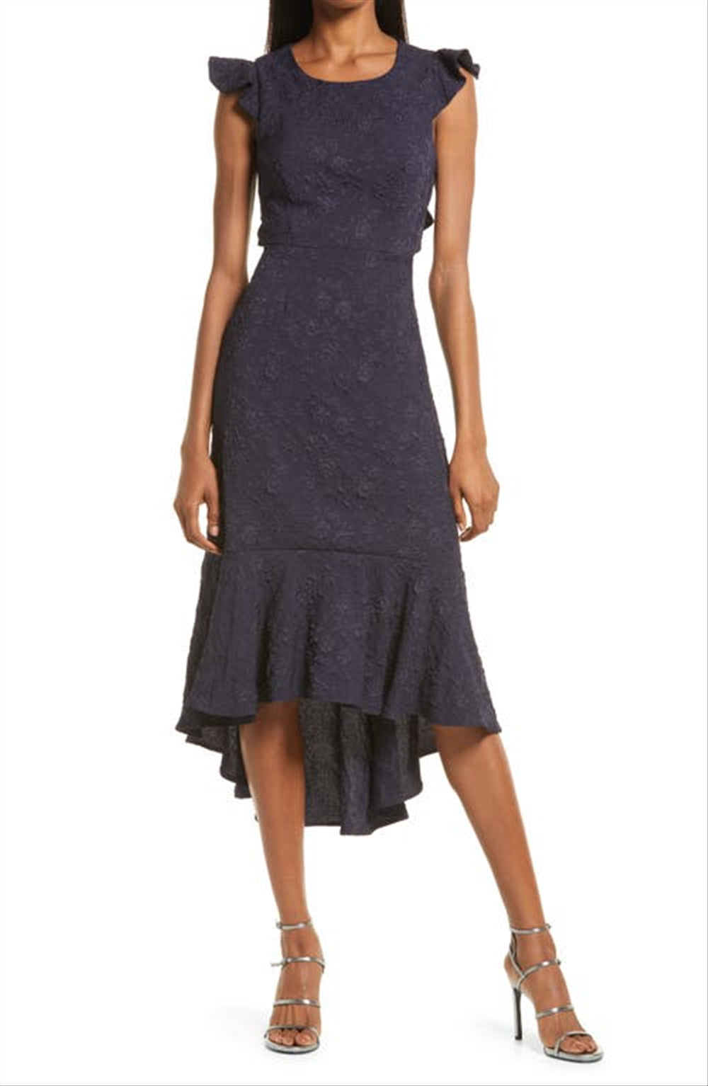Tonalidade azul-marinho | Tecido jacquard | Tamanho médio | Disponível na Nordstrom | Design sofisticado | Use em festas | Marca Lulus | Detalhes complexos | Silhueta elegante | Material de alta qualidade