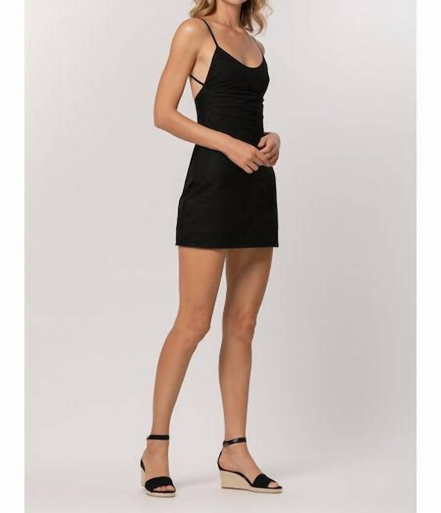 The kind of easy and flattering dress you'll be reaching for all season long. Introducing the Desiree Mini Dress by LUSANA, a stylishly fitted piece in sleek black perfect for any evening event. This dress features adjustable spaghetti straps and a scoop neckline, with a playful cut-out back for a flirty touch. It is crafted from 100% certified organic cotton poplin, emphasizing conscious fashion choices. With a thoughtfully designed zip closure at the back, the dress combines comfort with function. Care instructions include machine wash and tumble dry.